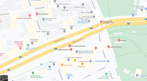 Ausgangspunkt um 10h Vormittag ist die Straßenbahnhaltestelle Quartier Belvedere